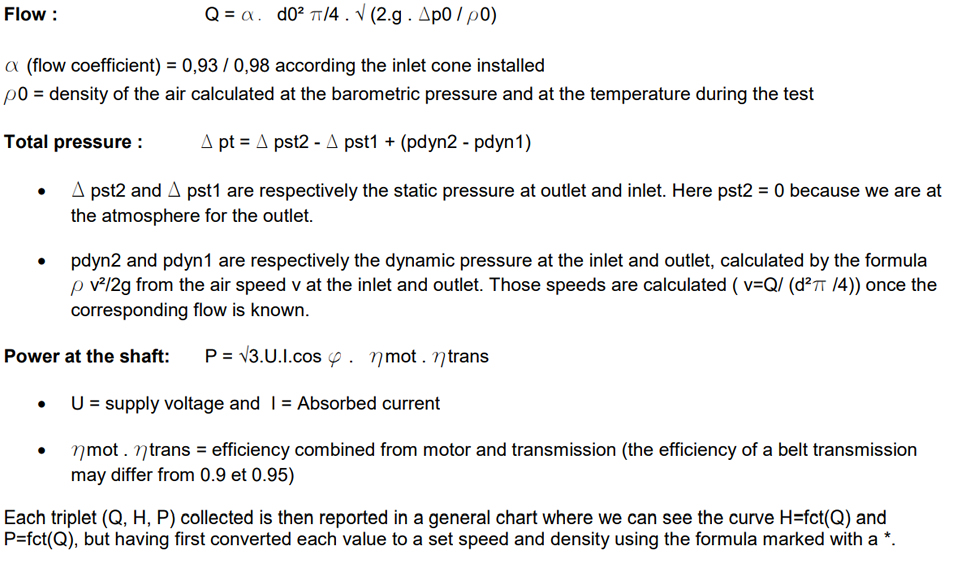 As example, we describe here shortly the DIN 24163 which allows testing big fan in the workshop, before delivery, when this test is requested by the client.