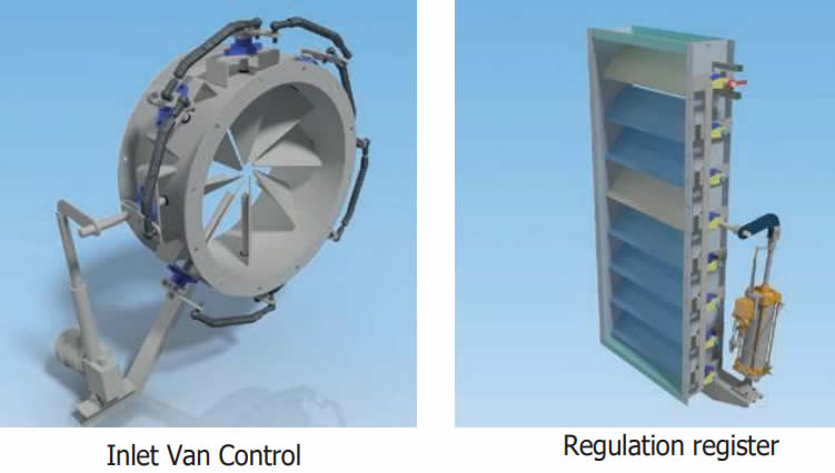 Choose, whenever possible, an inlet vane control rather than a simple register. The Inlet Van Control on the fan’s suction side changes the fan’s curve, but a register only adds a pressure drop to your system to reduce the flow rate.