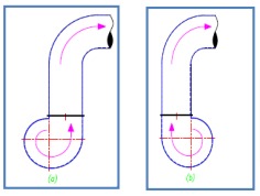 la direction de la gaine de refoulement, on comprendra aisément que la veine fluide est moins perturbée en b) qu’en a). Chaque perturbation se traduit par