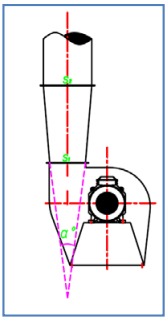 Une attention particulière doit également être donnée au design du diffuseur à placer à la sortie du ventilateur. Cette pièce, sensée raccorder des sections de ventilateur et de gaine différentes, si elle est bien étudiée, peut permettre une récupération de l’énergie cinétique de l’air pour la transformer en énergie statique, celle-ci étant la seule intéressante pour vaincre les pertes de charge du circuit. Cette récupération peut théoriquement se chiffrer par la différence des pressions dynamiques entre section d’entrée et de sortie du diffuseur : ∆Hdyn = ρ (v2²-v1²)/2g , où ρ est la masse volumique de l’air et v , sa vitesse à l’entrée et à la