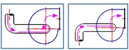 Ex 1 : un coude à angle droit juste à l’entrée du ventilateur. Ce coude fait tourner l’air, et crée un tourbillon. Si le sens de rotation du tourbillon est le même que le sens de rotation du ventilateur, il y aura réduction du débit, de la pression et du rendement du ventilateur. Si par contre les sens de rotation sont contraires, il y aura augmentation du débit, avec augmentation plus ou moins forte de la puissance et risque d’instabilité.