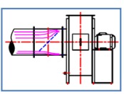 Ex 2 :Une vanne placée trop près de l’aspiration. La vanne va créer une distorsion du flux d’air, provoquant une charge irrégulière de la roue. Une vanne doit être située au moins à 5D (D= Ø de la gaine) de l’ouie d’aspiration, pour laisser à l’air la possibilité de se redistribuer correctement avant d’entrer dans le ventilateur.