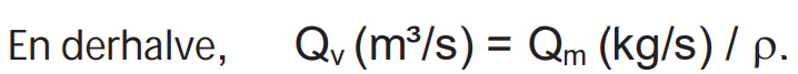 2/ Bij een onveranderd circuit, met een constante snelheid, en een luchtstroom die overgaat van dichtheid ρ1 (kg/m³) naar dichtheid ρ2,