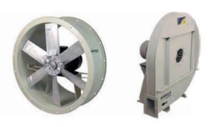 Theoretisch kan elke ventilator, mits op de juiste snelheid te draaien, elke druk bij elk debiet leveren. Door de beperkingen van de materiaalsterkte en het efficiëntiecriterium worden axiale ventilatoren gebruikt voor grote debieten bij lage druk, en centrifugale ventilatoren voor matige debieten bij hogere druk.
