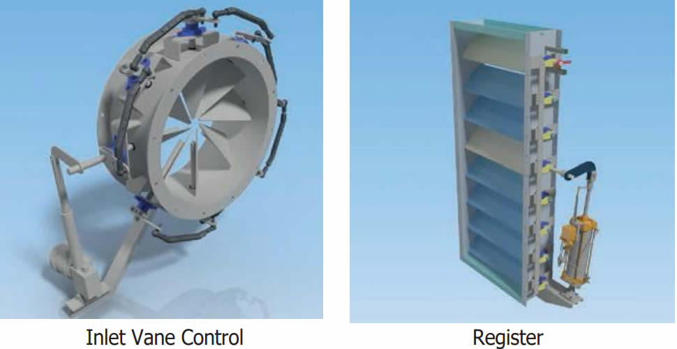 Een goede bewaking van uw proces door oordeelkundig gekozen sensoren maakt een efficiënte regeling van de ventilator mogelijk, hetzij door frequentievariatie, hetzij door een register, hetzij door andere