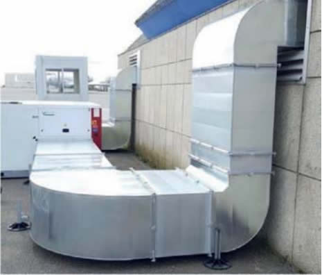 kromtestraal en dat elke plotselinge verandering in de dwarsdoorsnede of de richting van de lucht die turbulentie en dus drukverliezen veroorzaakt, moet worden vermeden.